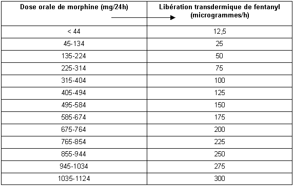 Tableau 3: Dose initiale recommandée de fentanyl transdermique en fonction de la dose orale journalière de morphine