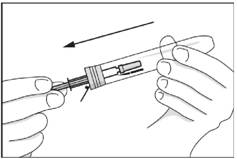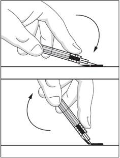· Vous pouvez replacer la seringue utilisée dans le tube avec l'aiguille dirigée vers le bas ou vous pouvez mettre la seringue utilisée dans un conteneur à aiguilles. La seringue est maintenant sécurisée et le tube ou le conteneur à aiguilles peuvent être remis pour la destruction à l'hôpital ou au pharmacien.