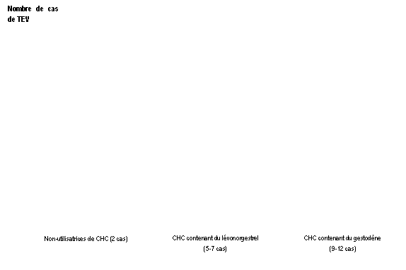 2 Point central de l’intervalle de 5-7 pour 10 000 années-femmes sur la base d’un risque relatif, pour les CHC contenant du lévonorgestrel par rapport à la non-utilisation d’un CHC, d’environ 2,3 à 3,6