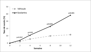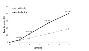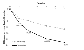 Soolantra était significativement supérieur à son véhicule pour les 2 critères principaux d’efficacité avec un début d'efficacité dès 4 semaines de traitement (p < 0,05).
