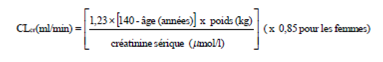 La prégabaline est éliminée de la circulation générale principalement par voie rénale sous forme inchangée. La clairance de la prégabaline étant directement proportionnelle à la clairance de la créatinine (voir rubrique 5.2), chez les patients présentant une insuffisance rénale une réduction de la dose devra être établie individuellement en tenant compte de la clairance de la créatinine (CLcr), comme indiqué dans le Tableau 1, calculée selon la formule suivante :