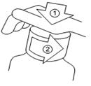 Un gobelet-doseur gradué est fourni avec SPORANOX solution buvable. Utiliser ce gobelet-doseur dans le sens où il est posé sur le flacon. S’assurer que le côté avec les graduations (le côté avec le plus petit contenant) soit en haut. Si la flèche sur le côté pointe vers le haut, le gobelet-doseur est dans le bon sens.