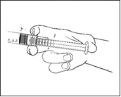 6) Raccordez la seringue à l’abord ou à une aiguille. Enfoncez lentement le piston pour injecter le volume requis. |