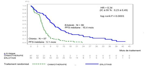 Lorsque l’utilisation d’erlotinib en première ligne de traitement ou en traitement de maintenance des formes localement avancées ou métastatiques du cancer bronchique non à petites cellules (CBNPC) est envisagé, il est important que le statut de la mutation de l’EGFR d’un patient soit déterminé.