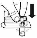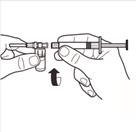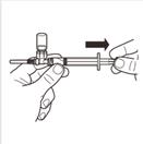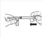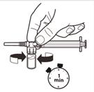 Retournez le système MIXJECT de manière à ce que le flacon soit en haut. Saisissez fermement le système MIXJECT par la seringue et tirez doucement sur la tige du piston pour prélever le produit reconstitué dans la seringue.