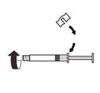 Détachez l’adaptateur du flacon de l’assemblage MIXJECT-seringue : Saisissez fermement la seringue et tournez le flacon (en tenant le capuchon en plastique de l’adaptateur) dans le sens des aiguilles d’une montre. |