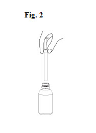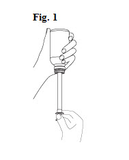 5. Le flacon doit être retourné à nouveau et la seringue remplie retirée de l’adaptateur en tournant doucement (Fig. 2).