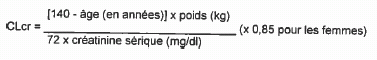 La CLcr (ml/min) peut être estimée à partir de la valeur de la créatinine sérique (mg/dl) selon la formule suivante: