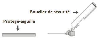 Attention : Ne pas essayer de déverrouiller (désactiver) le dispositif de sécurité en forçant l'aiguille à sortir du bouclier de sécurité. |