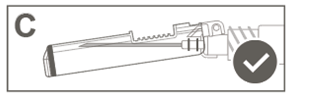 Étape 6: Inspecter visuellement l’activation du bouclier de sécurité. Le bouclier de sécurité doit être entièrement verrouillé (activé), comme indiqué sur l’image C. |