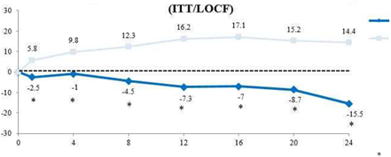 ITT = intention de traiter ; LOCF = dernières observations rapportées ; ET = écart type