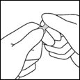 3- En maintenant le pouce sur le point, casser d'un mouvement sec le haut de l'ampoule en maintenant fermement le corps de l'ampoule dans la main.